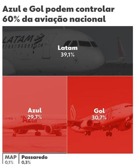 A Gol detinha 33% de participação de mercado na indústria de aviação brasileira no ano passado, perdendo apenas para a Latam Brasil — conforme definido pela receita de passageiros por quilômetro, que mede o tráfego.